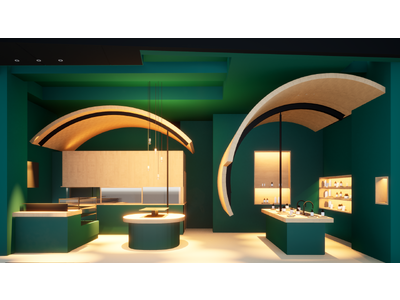 店舗は成瀬・猪熊建築設計事務所が、「材木屋らしさ」をイメージして設計しました。地元中津川産の桧を使用した木のアーチがランドマークになっています。meet tree GINZAという銀座に生まれた森で、森林浴をしているような心安らぐ体験をお楽しみください。