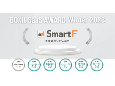 株式会社ネクスタ(本社:大阪府大阪市西区、代表取締役: 永原 宏紀)が提供する生産管理クラウドシステム「スマートF」 は、スマートキャンプ株式会社(以下「スマートキャンプ」)が主催する「BOXIL SaaS AWARD Winter 2023」の生産管理システム部門で「Good Service 」「サービスの安定性No.1」「機能満足度No.1」「カスタマイズ性No.1」「お役立ち度No.1」「使いやすさNo.1」に選出されました。