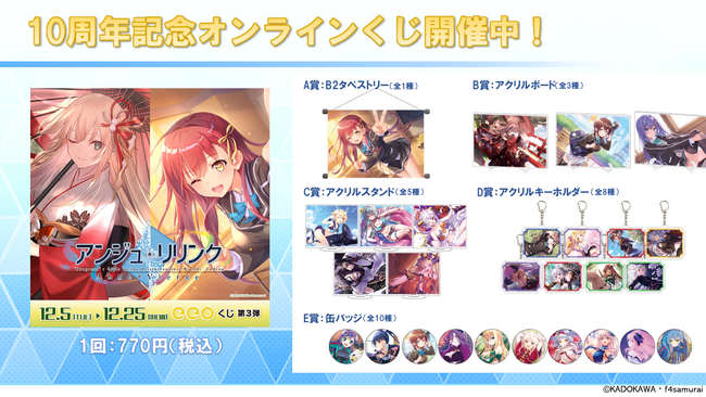 アンジュ10周年を記念したオンラインくじ「eeo」くじ第3弾が12月25日(日)まで開催中です。