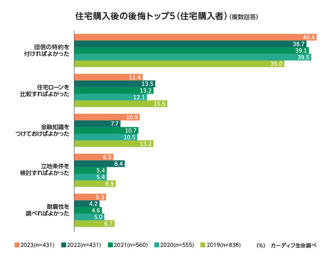 住宅購入後の最大の後悔は、「団信の特約を付けておけばよかった」(40%)(図表6-1)。