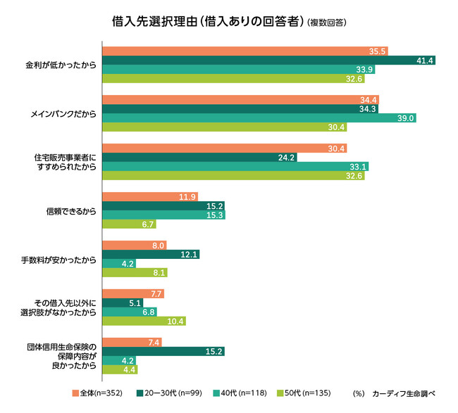 住宅ローンの借入先の選択理由トップは「金利」。20-30代の約2割は団信の保障内容を重視