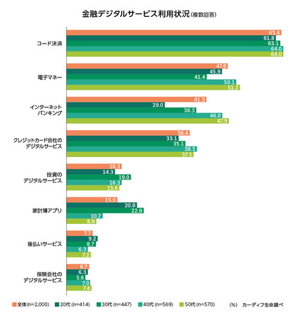 金融デジタルサービスの利用がさらに浸透。「コード決済」の利用率は全世代で6割超
