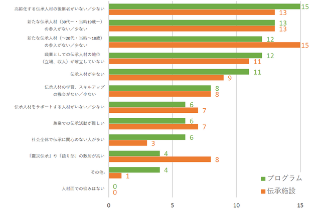 震災学習プログラム実施団体及び震災伝承施設運営団体担当者の伝承承人材育成に関する問題意識。