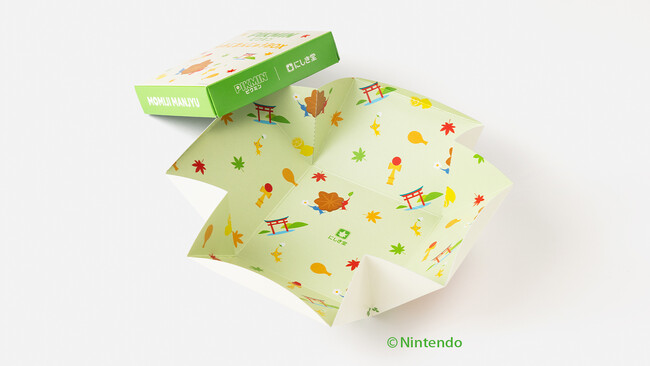 パッケージのBOXには、もみじ饅頭を運ぶピクミンや、チャッピーに追いかけられるピクミンたちをデザイン。BOXの内側は、広島の名産品やピクミンのパターン柄が入った仕上がりになっています。