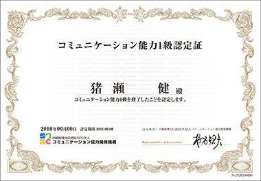 コミュニケーション能力1級認定コースでは、初対面かつ短時間で信頼関係を築くための『聞き方』『伝え方』の基本や、人間関係で失敗しない方法、苦手な相手との付き合い方などが学べ、1日講座を修了した方にはコミュニケーション能力1級の認定証が発行されます。