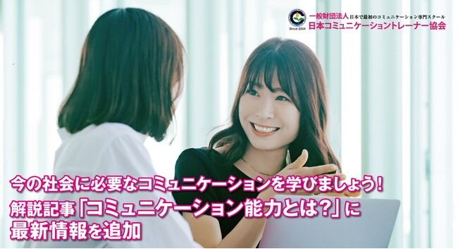 一般財団法人日本コミュニケーショントレーナー協会(東京都千代田区、代表理事:椎名 規夫)は、「コミュニケーション能力とは?」の解説記事について、コミュニケーション専門スクールとしての経験からコミュニケーション能力の向上に焦点をあて、より豊かな人間関係と対人関係を構築するためのリソースと支援を提供するための最新情報を加え、改訂版記事を10月19日に公開しました。
