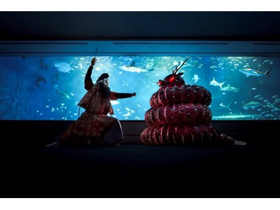 「石見神楽」は、島根県西部、石見地方を代表する伝統芸能で、室町時代後期に起源を持ち、軽快な囃子に合わせながら、豪華絢爛な衣裳をまとった舞手が躍動的な舞を披露するのが特徴です。2019年5月には日本遺産に認定され、昨年7月には国立劇場で石見神楽の単独公演が行われるなど、伝統を守り続けながらも現在進行形で挑戦し続けている伝統芸能でもあります。今回の取り組みでは、史上初の試みとなる閉館後の水族館を有効活用しての夜神楽の開催をはじめ、島根を代表する伝統文化「石見神楽」の真髄に触れることのできるスペシャルな企画となっております。
