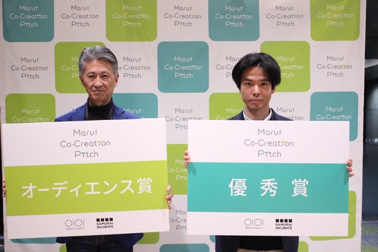 イベント当日は、51社の応募企業の中から選出された11社が審査員と丸井グループ社員約300名に向けて当社の事業の紹介と丸井グループとの協業アイデアを発表しました。審査員による協議の結果、丸井グループのアセットやノウハウを活用した新たな価値提供の可能性や独自性、顧客ニーズの強さの観点で高い評価を得て、当社が「優秀賞」に加え、丸井グループ社員約300名が最も協業したい企業に投票し、その得票数によって決まる 「オーディエンス賞」をダブル受賞しました。
