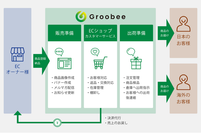 https://groobee.com)はアーティスト・アニメやキャラクターなどのコンテンツに特化した、エンターテインメントに最適な機能が詰まった初期費用0円からスタートできるサイト構築サービスです。サイト上のクリエイティブ、CS対応から物流対応までGroobeeがサポートいたします。1つのコンテンツを取り扱う単独型のECサイト構築に加え、アーティストやコンテンツが複数存在する場合はモール型のECサイト展開も可能です。Groobeeは、SaaSとしての提供も行っており、既存のECサイトにも柔軟に対応することが可能です。
