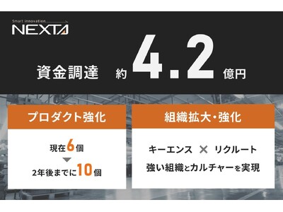 製造業向けの生産管理クラウドシステム「スマートF」を提供する株式会社ネクスタ(本社:大阪市西区、代表取締役:永原 宏紀、以下ネクスタ)は、新規のリード投資家としてジャフコグループと既存投資家のXTech Ventures、およびグロービスを引受先とする第三者割当増資を実施し、総額約4.2億円を調達いたしました。