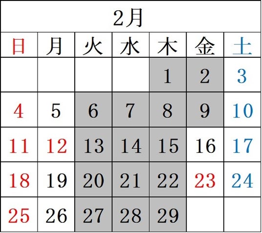 ※グレーが休園日となります。
