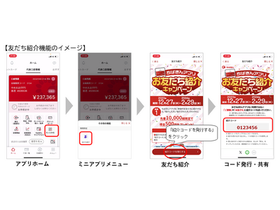 千葉銀行(頭取 米本 努)は、2023年12月27日(水)、ちばぎんアプリ内にキャンペーンなどのさまざまなサービスを提供する「ミニアプリ」の機能を導入します。今回はミニアプリメニューの第一弾として、2023年12月27日(水)から2024年2月29日(木)まで、「友だち紹介機能」を利用した「お友だち紹介キャンペーン」を実施します。