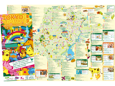 「東京ベジマップ」は、都内にあるベジタリアン・ヴィーガン対応の飲食店が一目でわかる紙媒体のマップです。東京都内の観光案内所やマップに掲載の飲食店などで、無料で入手することが出来ます。