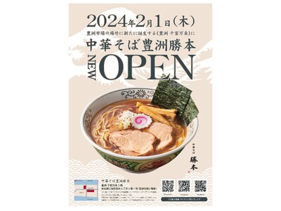 東京水道橋に本店を構える「中華そば勝本」(東京都千代田区・店主松村康史)は新店「中華そば豊洲勝本」を、2024年2月1日に豊洲市場の場外へ新設される「豊洲 千客万来」にオープンいたします。