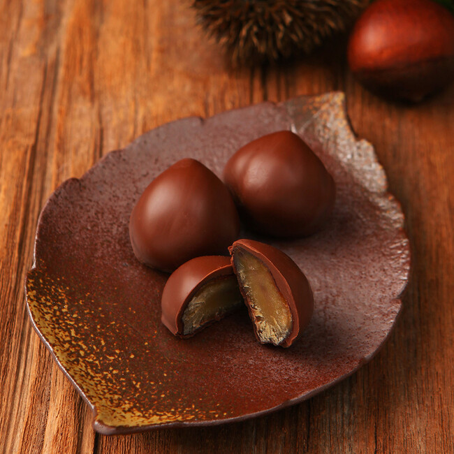 しっかりとした肉質と上品な甘みをもつ熊本県産の渋皮栗を、洋酒入りのシロップにじっくりと漬け込み、厳選した栗に合うチョコレートでコーティング。チョコレートと栗の甘みが絶妙です。