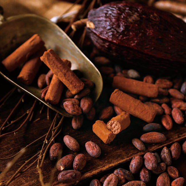 北海道で蒸留された重厚で力強く複雑で深みのある味わいのシングルモルトウイスキーを使用した特製のシロップを、ペルー産カカオ豆のスモーキーな風味のチョコレートでコーティングしました。