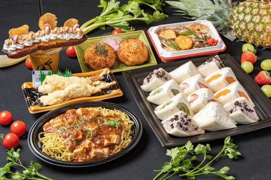 2023年 優秀賞1品 四季のフルーツサンド、入選6品 悪魔のささ焼、明太子スパゲティサラダ、カナガシラの天ぷら、四季 を味わう油麩丼、仙台味噌おにぎりセット、フカヒレ舞い踊る海鮮まみれ鮨