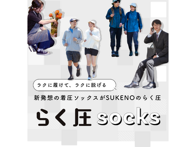 「6秒で履けて、3秒で脱げる」SUKENOの着圧ソックス【らく圧】に新色登場!欲しいが見つかる「らく圧ソックス診断」サービスも開始!