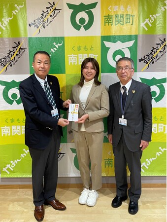 プロゴルファー大里桃子(伊藤園所属)が、出身地である熊本県南関町と出身校熊本国府高校へ寄付をいたしました。