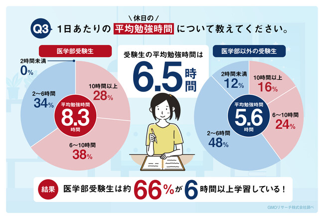 医学部を第一志望とする2024年度入試受験生の66%が6時間以上勉強しています。うち28%は10時間以上勉強していると回答。