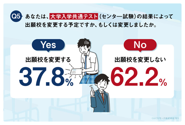 大学入試共通テストの結果によって出願校を変更する割合は約3割と意外にも低い
