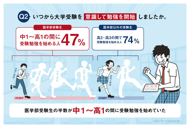 医学部合格を目指す受験生が受験勉強を始めた時期は、他学部を目指す受験生よりも早いことが分かりました。