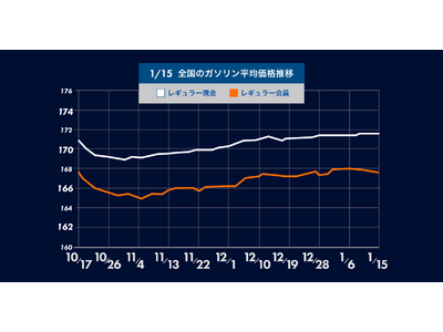 1月15日(月) 時点のレギュラーガソリンの全国平均は、171.6円となり先週から0.2円の値上がり。2週間ぶりの値上がりとなりました。