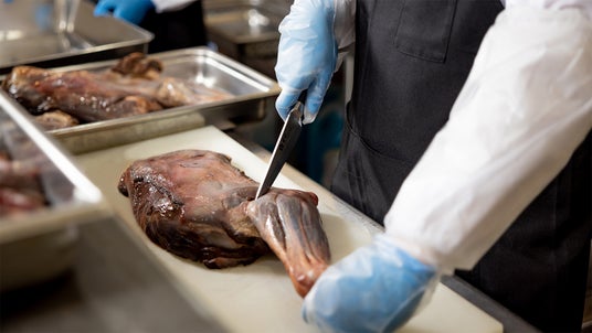 株式会社コラントでは、厳しい品質の基準が求められる学校給食の食材を長年取り扱っており、大切なご家族である愛犬にも安心して与えられるヒューマングレードのフードが必要と考え、同様の品質基準で食材を選定しています。また、製造においても、肉の仕込みから加工、乾燥までの工程を一貫して自社工場にて専門スタッフが手作業で行うことで、安定した品質と安全性を実現しています。