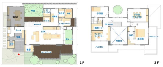 (2階)吹抜けに面したファミリーライブラリーによって、家中の空気が穏やかに繋がる