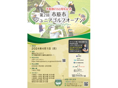 日本一のゴルフ場数を有する「ゴルフの街いちはら」の取組みの一環として、日頃よりゴルフに取り組むジュニアゴルファーに、その成果を披露する機会を提供することを目的とした大会「第2回市原市ジュニアゴルフオープン」を開催します。