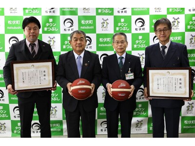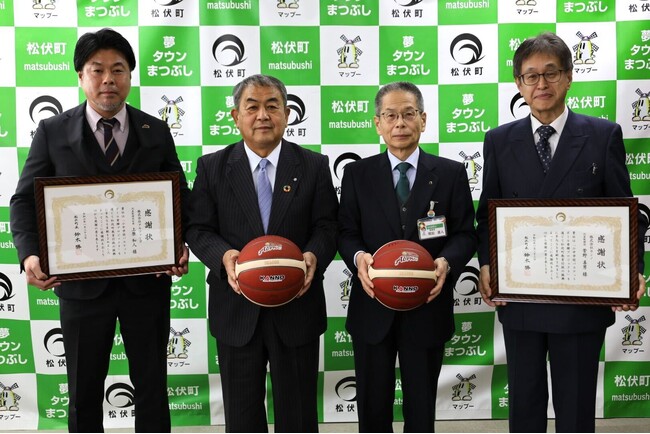 松伏町への初めての寄贈として、1月23日(火)に松伏町教育委員会に小学生用と中学生用のバスケットボール7球を寄贈いたしました。