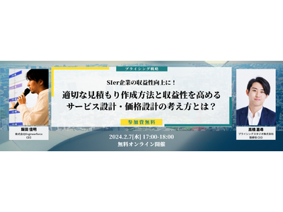 プライシングスタジオ株式会社(本社:東京都港区、代表取締役:高橋 嘉尋)は、オンラインセミナー『SIer企業の収益性向上に!適切な見積もり作成方法と収益性を高めるサービス設計・価格設計の考え方とは?』を2024年2月7日(水)17時から開催いたします。