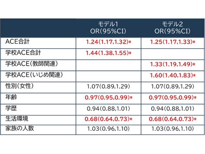 ※モデル1では、学校ACEを全体として扱い、モデル2は、学校ACEを教師関連スコアといじめ関連スコアに分けて扱っている。