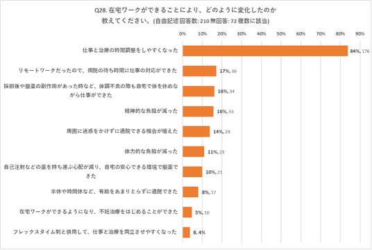 <6>在宅ワークは、「仕事と治療の時間調整がしやすくなった」(84%)(Q28)