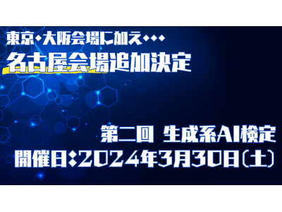 これにより、「第2回 生成系AI検定」は「東京都豊島区会場」「大阪府大阪市会場」に加え「愛知県名古屋市会場」の全国3ヶ所での開催となります。