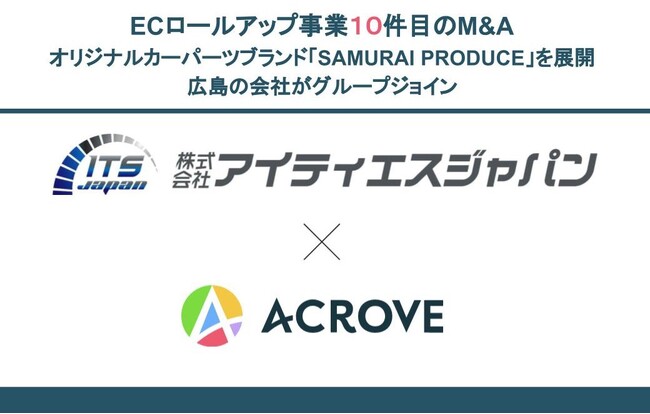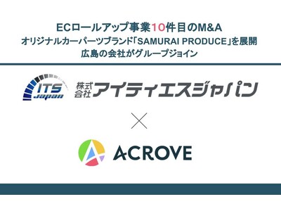 EC売上最大化を実現するECプラットフォーム事業とM&Aを通してブランド育成を図るECロールアップの2事業を展開する株式会社ACROVE(本社:東京都千代田区、代表取締役社長:荒井 俊亮、以下ACROVE)は、オリジナルカーパーツの開発・製造・販売を手掛ける株式会社アイティエスジャパン(本社:広島県広島市)の発行済み株式を取得し、1月31日付で同社を完全子会社化いたしましたことをご報告いたします。