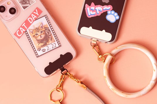 お手持ちのスマホに引っかけるだけでひょっこりとネコちゃんが出現し、スマホストラップやスマホショルダーを支えてくれます。