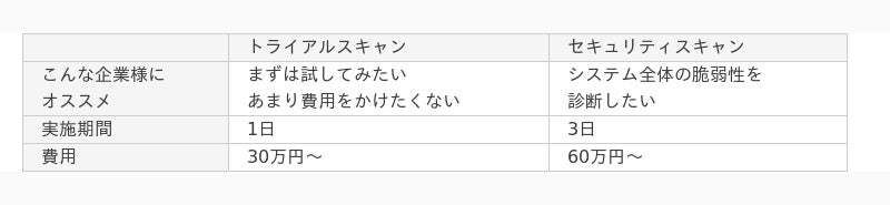 トライアルスキャン・セキュリティスキャン(脆弱性診断)と