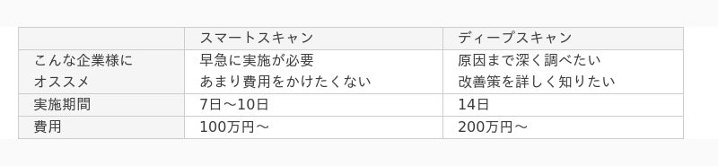 スマートスキャン・ディープスキャン(ペネトレーションテスト)を提供しています。