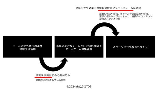 北九州市にはスポーツチームが4つありますが、取り組む地域活動を含め、多くの情報は市民に届いておらず、新規ファン獲得に繋がっていないのが現状です。各チームの情報を効率的かつ効果的に発信し、各チームの新規ファン獲得に繋げ、スポーツで北九州市を盛り上げることを目的に、「キタスポ」を立ち上げました。