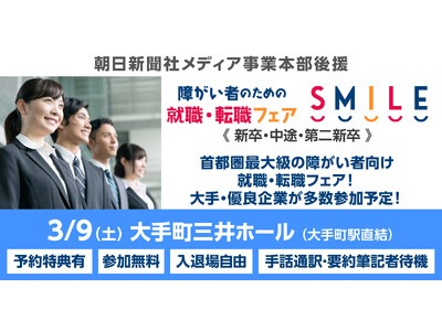 首都圏最大級の障がい者向け就職・転職フェア「SMILE」が3/9(土)東京・大手町にて開催!