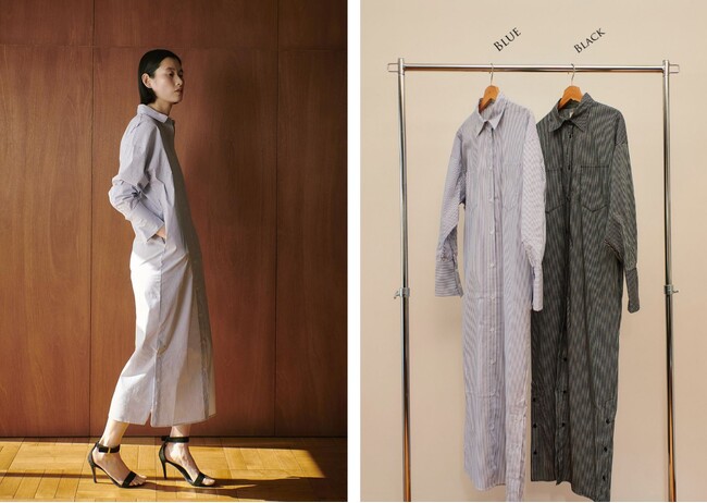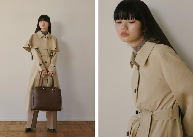 シーズンコレクションとして、”Cape trench coat"と"Stripe shirt dress"を、2024年2月9日(金)12:00より公式WEBストアにて発売開始いたします。