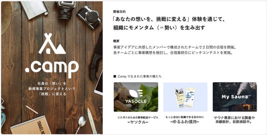 全社員が参加する「.camp」という事業創造合宿を定期的に実施しています。社員がリーダーとなり、想いを共有した他のメンバーとチームを結成し、合宿で集中的に取り組むことで、全社一丸となって事業創造を加速させることができます。