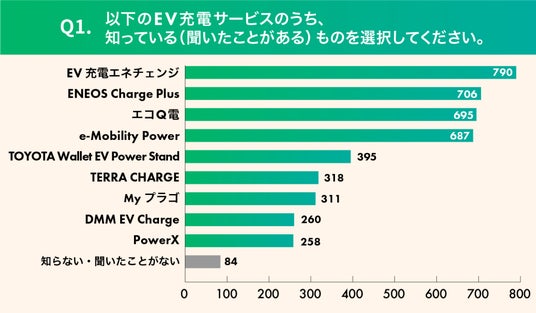 次いで「ENEOS Charge Plus」「エコQ電」「e-Mobility Power」 がほぼ横並びの結果となりました。