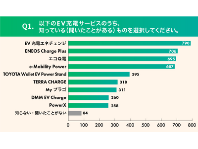 知っている(聞いたことがある)EV充電サービスについては、 最も多く回答されたのが「EV充電エネチェンジ」