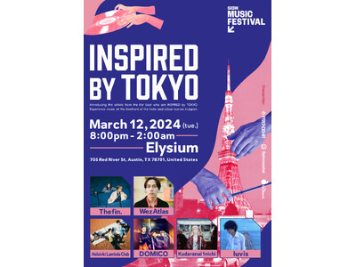 「INSPIRED BY TOKYO」は“TOKYO”というキーワードを通して、日本やアジアの次世代アーティストを紹介する目的で行われるショーケースライブで、The fin.、ドミコ、Helsinki Lambda Club、Wez Atlas、くだらない1日、luvisという日本国内外で活動する6組が出演する。