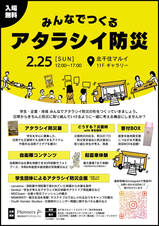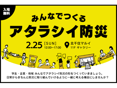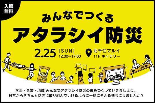 北千住マルイ(東京都足立区)11Fにて、「みんなでつくるアタラシイ防災」イベントを開催いたします。