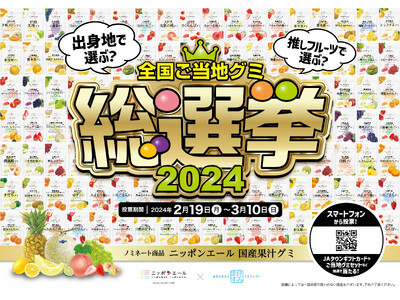 山本寛斎の哲学を継承し「デザインのちからで世界を元気にしたい」をコンセプトに活動する株式会社寛斎スーパースタジオがブランディング、パッケージデザインを担当する全国農業協同組合連合会(JA全農)の商品ブランド「ニッポンエール」。JA全農とグループ会社である全国農協食品株式会社が『ニッポンエール全国ご当地グミ総選挙2024』を2024年2月19日(月)より3月10日(日)まで開催されます。
