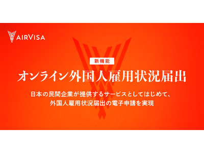株式会社AIRVISA(本社:東京都港区、代表取締役CEO:ジャファー アフメット)が運営する外国籍従業員ビザ管理・申請クラウドソフト「AIRVISA(エアビザ)」は、「オンライン外国人雇用状況届出」機能を提供いたします。