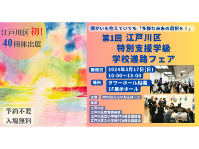 365日子ども食堂を運営するNPO法人らいおんはーと(事務局:東京都江戸川区、理事長:及川 信之)は、江戸川区と江戸川区教育委員会が後援となり「第1回 江戸川区特別支援学級・学校進路フェア」を2024年3月17日(日)タワーホール船堀 1F展示ホールにて開催いたします。
